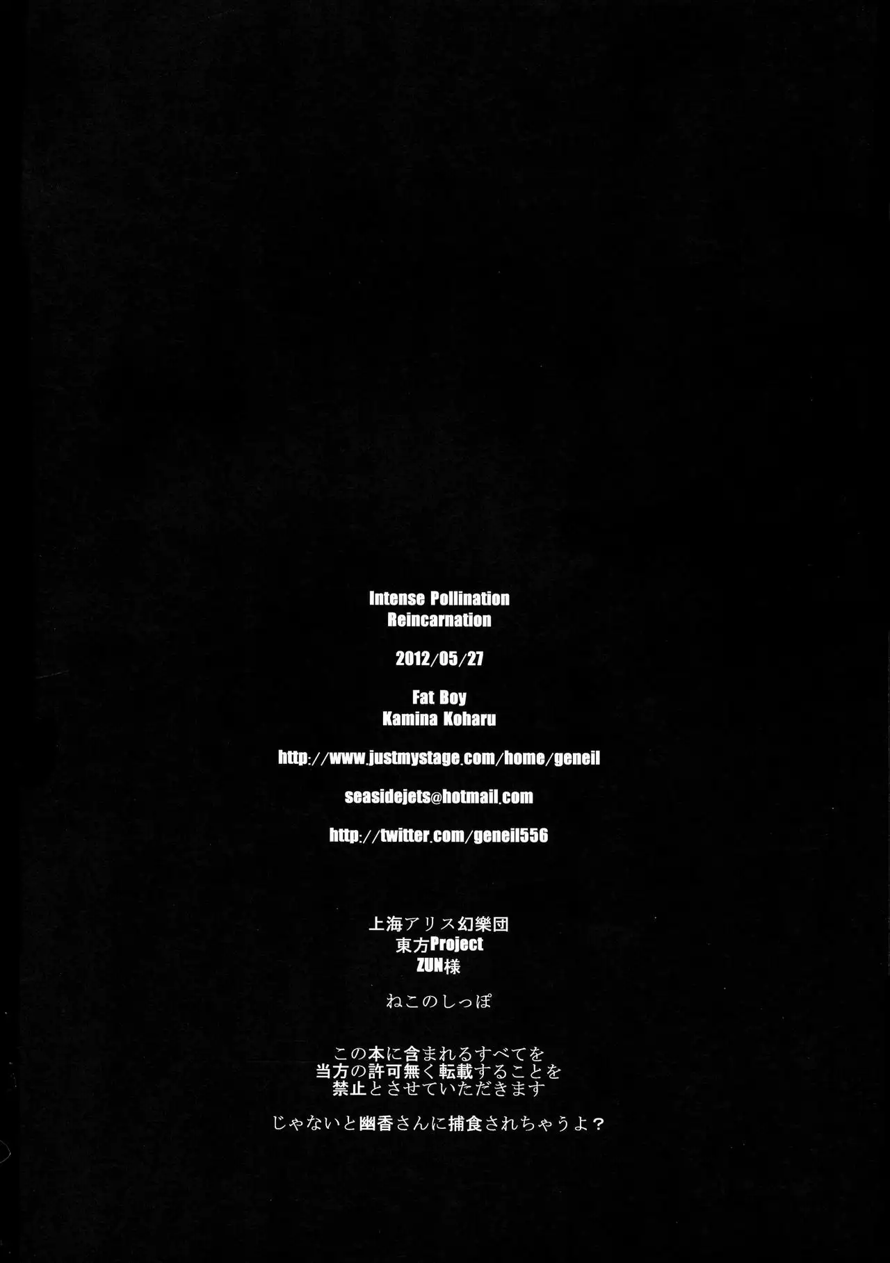 (Reitaisai 9) [Fatboy (Kamina Koharu)] Intense Pollination Reincarnation (Touhou Project)