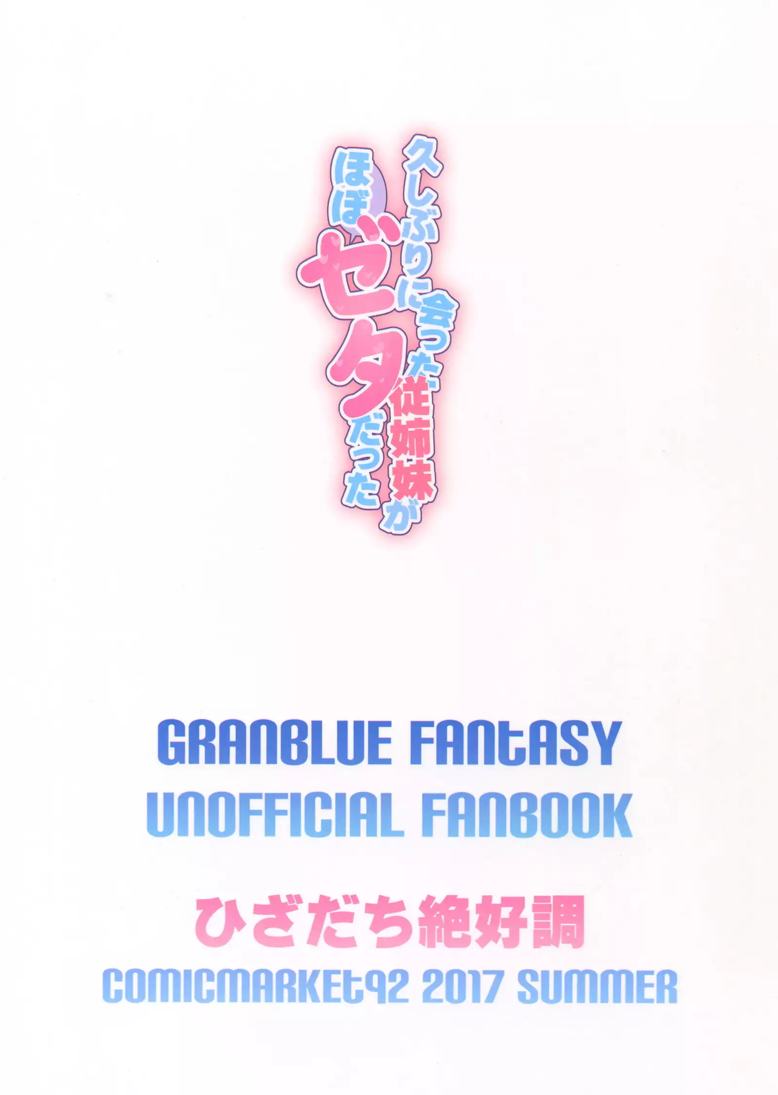 (C92) [Hizadati Zekkouchou (Nokin)] Hisashiburi ni Atta Itoko ga Hobo Zeta datta (Granblue Fantasy)